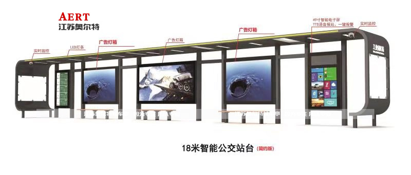 • 安全監(jiān)控:配置攝像頭,對站亭周邊實現(xiàn)治安監(jiān)控和交通管理,保障市民的候車安全。